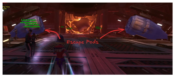 Once you load into the instance, there are several escape pods located along both sides of the ship. Click on any pod and jump down to the surface.