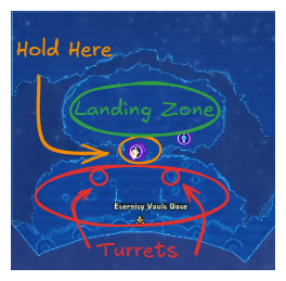 On the surface, find an area resembling a narrow ice bridge. Stay here and wait for your team; otherwise, you risk engaging the 2 Turret Towers. If you pass the 'C' on the ground, you will engage the turrets.