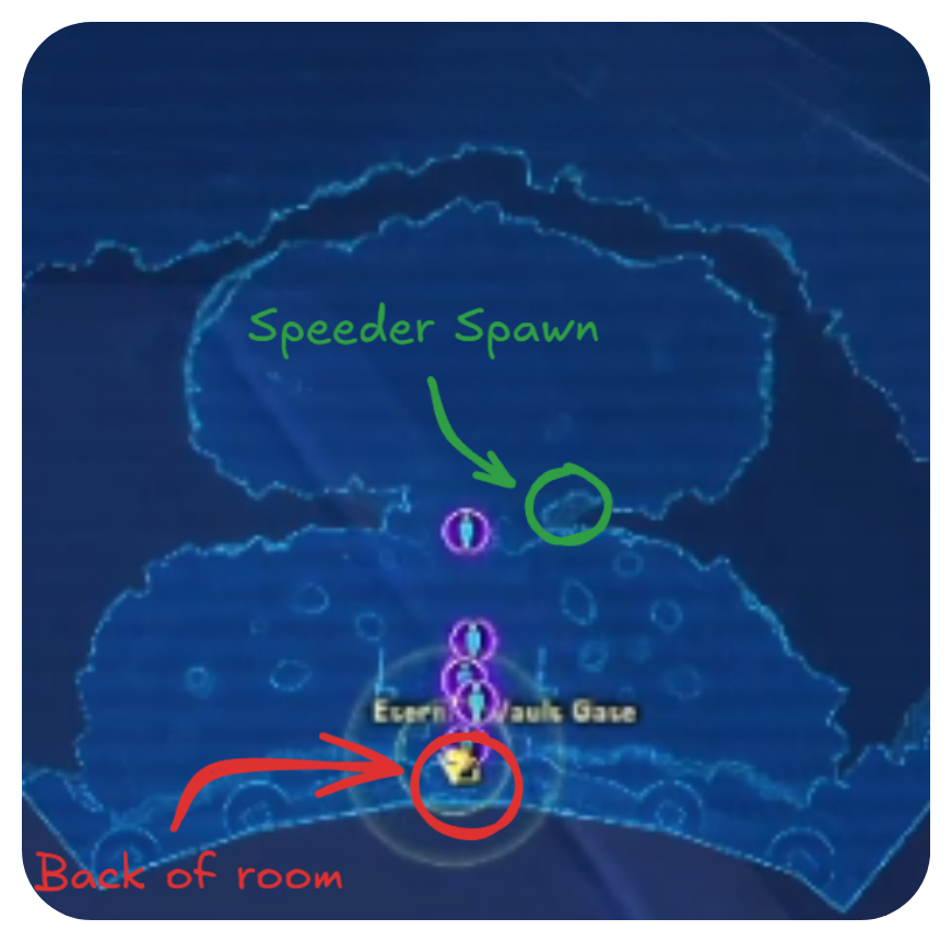 If your team has a stealth player and you want to skip the trash, all players except the stealth (and their puller, if needed) go back to the “Speeder Spawn.”
