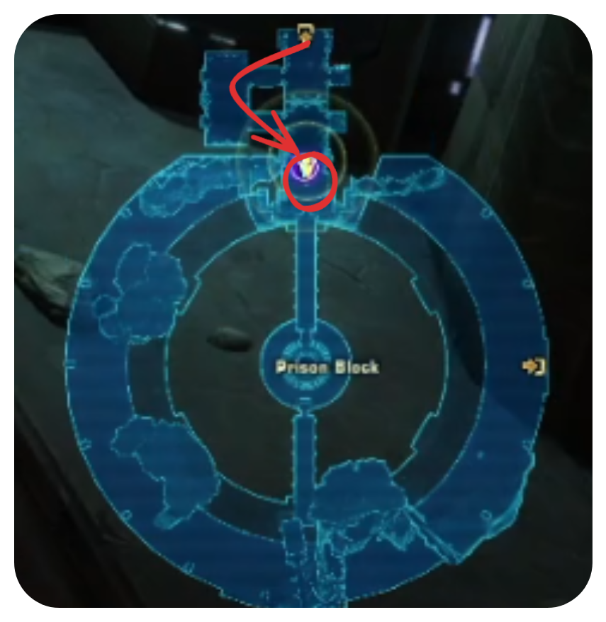 First travel to the first bridge inside the Prison Block. Once across the bridge, continue in a clockwise fashion around the rest of the Prison Block,